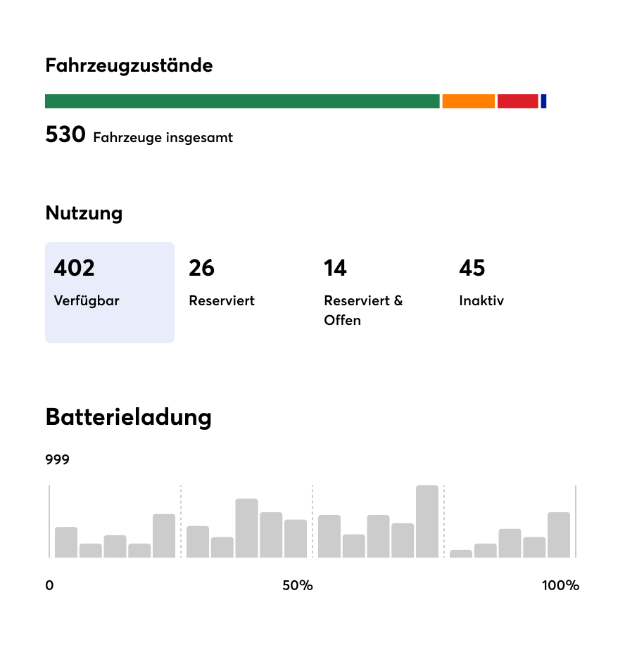 Verwenden Sie das Dashboard, um einen vollständigen Überblick über Ihre Fahrzeuge, Fahrten und Ihr Operations Team zu erhalten.