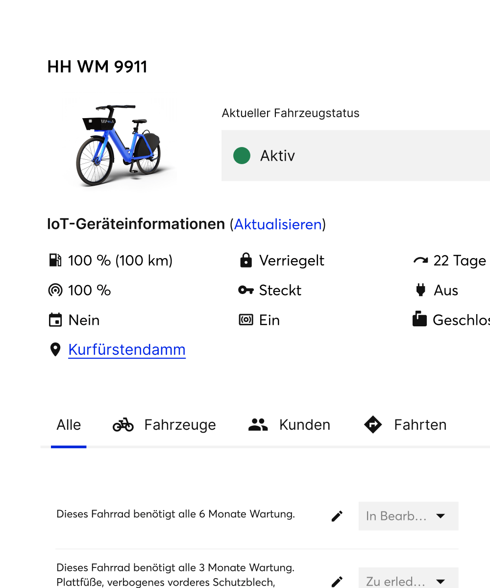 Anwendungsfälle: Free-floating oder stations-basiert? Sofort freischalten oder vorab reservieren? Autos oder Fahrräder? Eine beliebige Kombination? Unsere Plattform passt sich Ihren Bedürfnissen an und geht mit unser umfassenden API-Struktur und unseren Web-Hook sogar noch weiter.