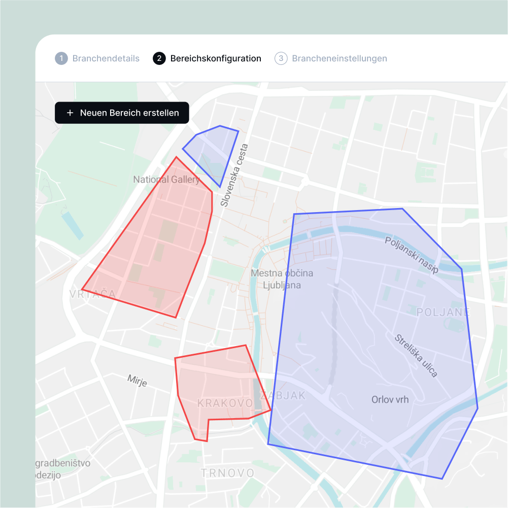 Einhaltung der Vorschriften der Stadt: Stellen Sie sicher, dass die städtischen Vorschriften eingehalten werden, indem Sie mehrere geografisch abgegrenzte Bereiche effizient verwalten, einschließlich Kapazitätsbeschränkungen, verbotener Zonen und Bereichen mit niedriger Geschwindigkeit.