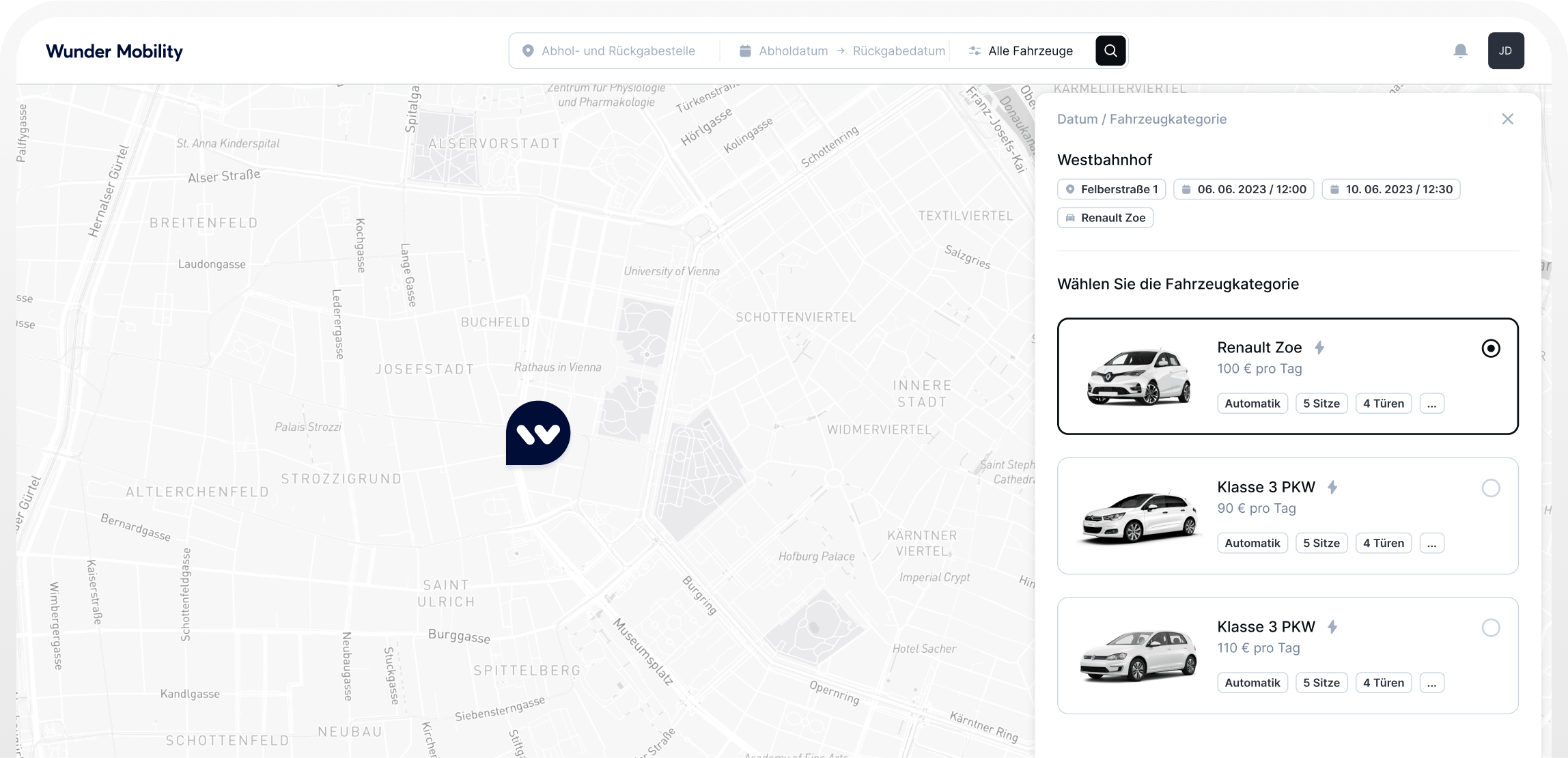 Wunder Mobility entwickelt seit 2014 Software im Bereich der geteilten Mobilität. Unsere Kunden reichen vom Mittelstand bis hin zu Unternehmen mit zehntausenden von Mitarbeitern.